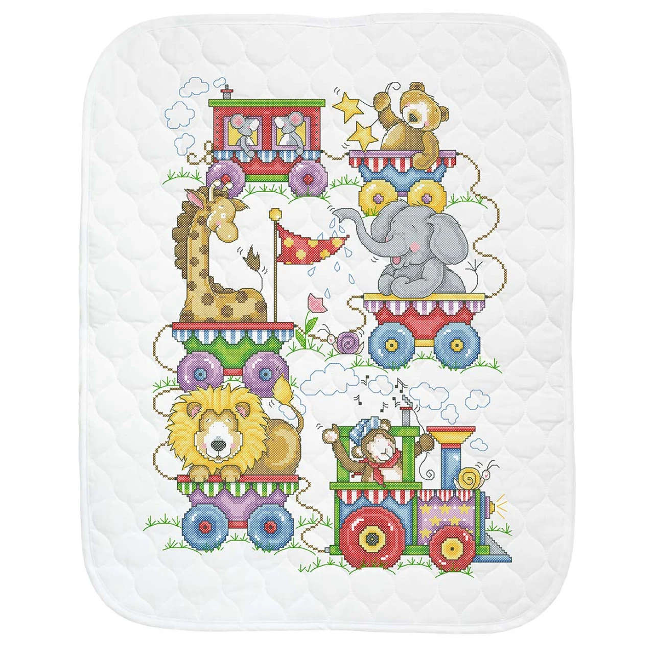 Herrschners Circus Train Baby Quilt Stamped Cross-Stitch Kit