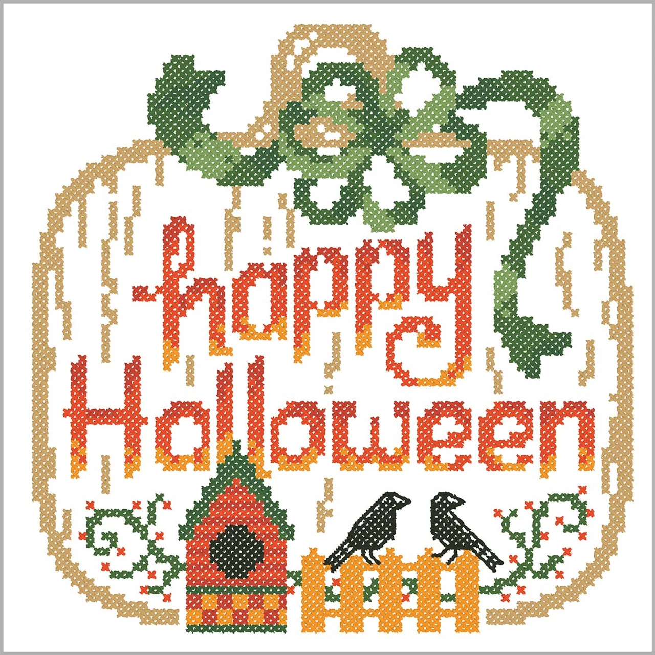 Herrschners Farmhouse Halloween Quilt Blocks Stamped Cross-Stitch