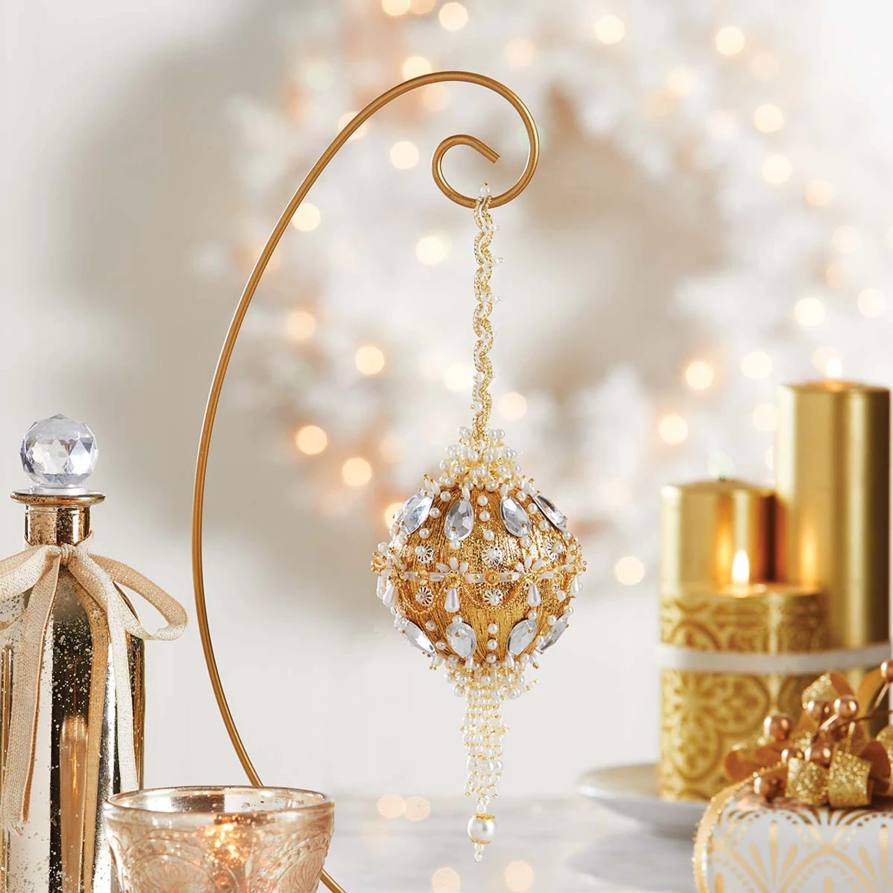This exclusive Herrschners Collector’s Ornament features a golden bauble accented with an arrangement of pearl beads and crystal acrylic gems that create dimension on the regal design. A cascading beaded tassel brings a chandelier-inspired elegance to this sequin and beaded masterpiece. This showpiece ornament is the 67th ornament in the Herrschners Collector’s Ornament Series. The elegantly designed collector’s ornaments take sequin and beaded designs to the next level with intricate arrangements of sequins and beads that make each finished design a keepsake you’ll proudly display year after year.