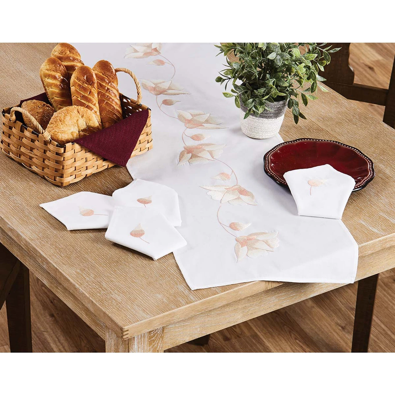 • Set contains one table runner and four napkins.